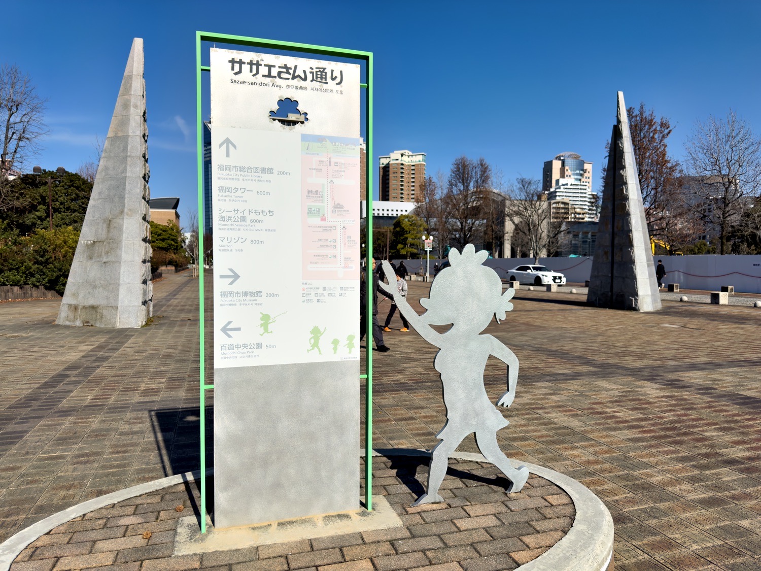 A: The street itself and the outdoor statues are entirely free of charge. Only the specific institutions, such as the Fukuoka City Museum or Fukuoka Tower, require admission fees.