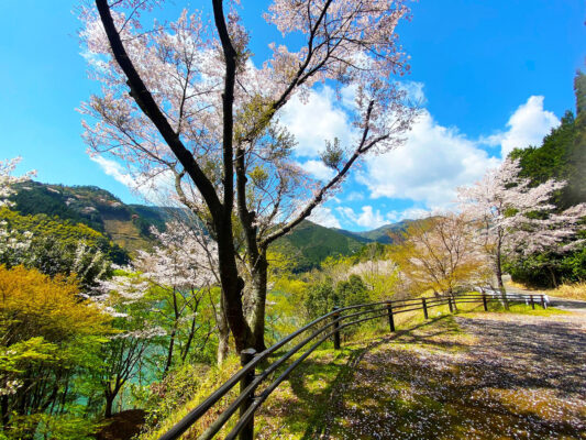 市房ダム湖周辺は24時間開放されており、広々とした環境でお花見を楽しめます。